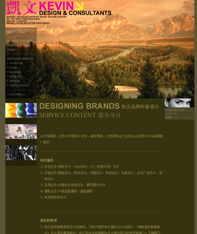 推广地区:宁波 核心策略:表现凯文广告设计,创新、艺术、独特的风格。 涉及项目工作: 凯文广告网站策划与设计,网站后台程序开发应用,网络推广。 项目背景:宁波凯文广告设计公司在宁波成立10周年,为配合10周年庆典,以全新面貌迎接10岁生日。